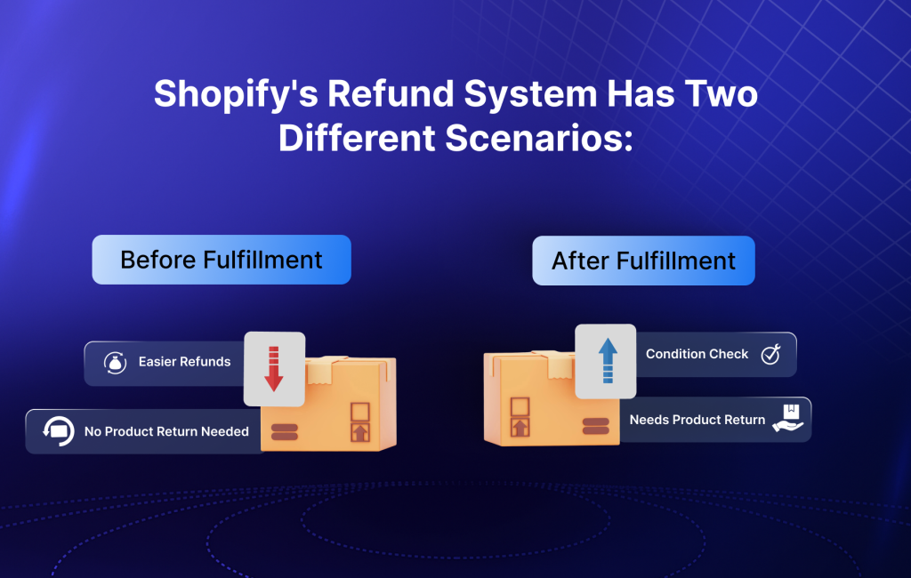 After fulfillment refund: This happens once the orders have been shipped or delivered to the customer. This requires various other considerations, like assessment of product condition, return shipping, inventory management, etc.