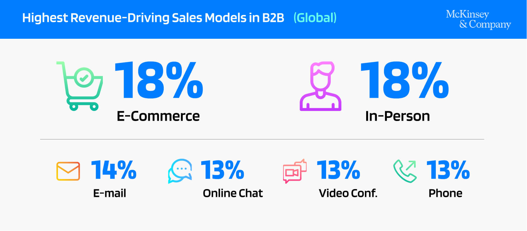 Also, eCommerce is no longer a new channel for B2B organizations to explore. According to McKinsey & Company reports, around 65% of all B2B companies across various industries are already fully transacting online in 2022. In the coming years, more and more B2B organizations are likely to shift over to the eCommerce sales channel from the in-person sales methods to offer better experiences to their customers and gain a competitive edge in the market.