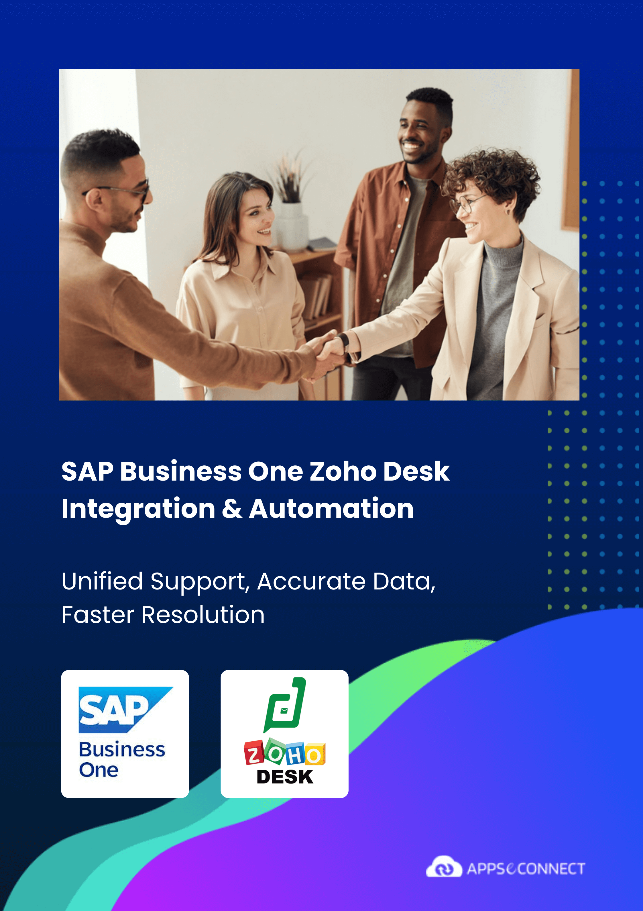 SAP Business One Zoho Desk Integration connects ERP and helpdesk so customer data, tickets, and updates move cleanly and quickly. APPSeCONNECT syncs accounts, contacts, products, tickets, notes, and statuses without re-typing.