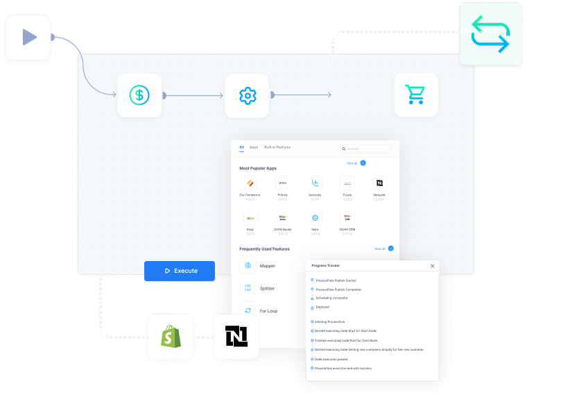 APPSeCONNECT’s ProcessFlow catches the webhook in real time with a hardened Shopify NetSuite Integration Connector.